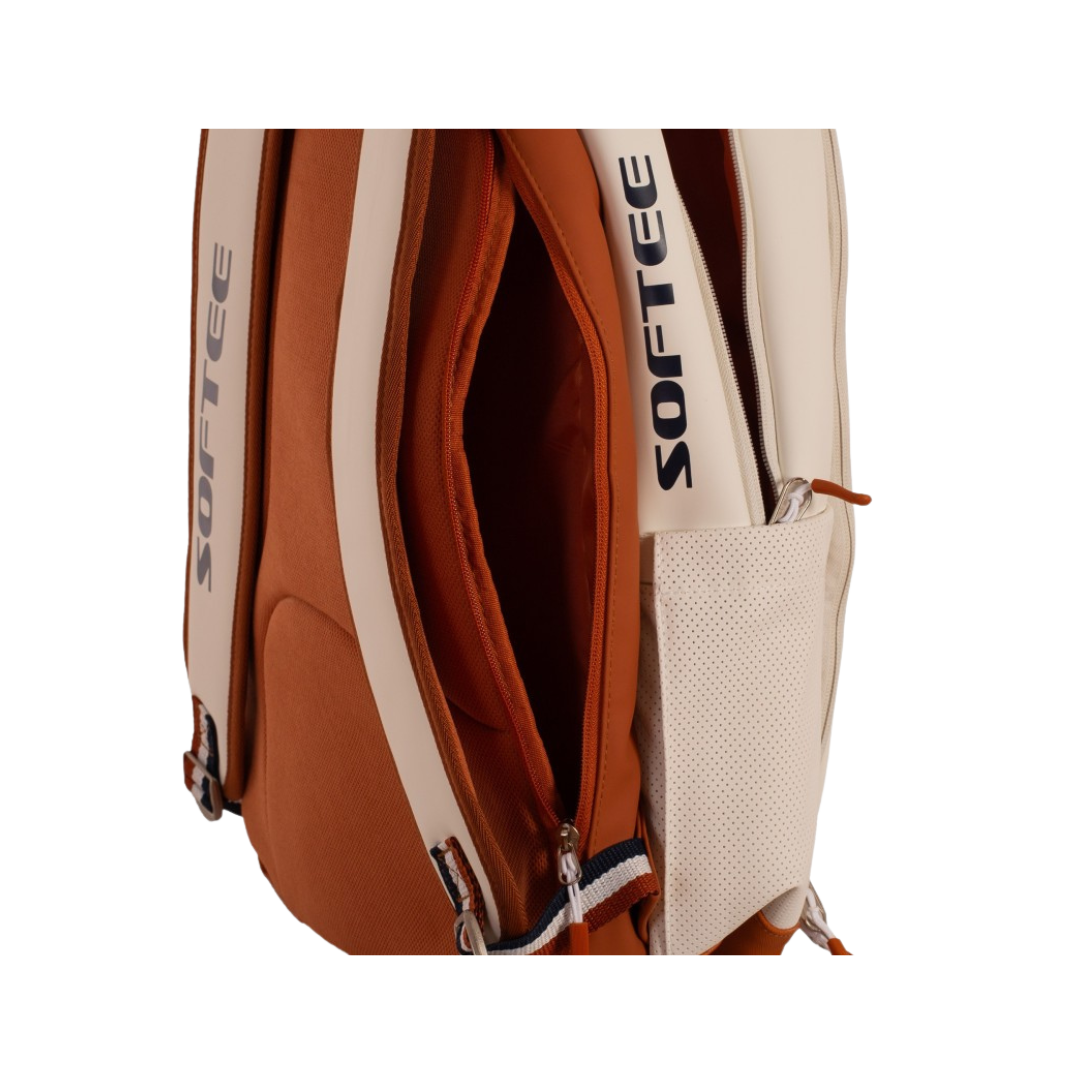 Der Softee Premier Rucksack vereint modernes Design mit hoher Funktionalität – perfekt für Training, Matches oder den Alltag. Mit seiner Kombination aus Beige, Marineblau und braunen Details bietet er nicht nur eine elegante Optik, sondern auch praktische Organisation für all deine Essentials.